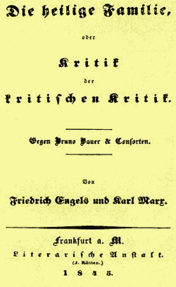 La Sainte Famille (en allemand : Die heilige Familie), à l'origine intitulé Critique de la critique critique (allemand : Kritik der kritischen Kritik)[1], est le premier ouvrage écrit conjointement par Karl Marx et Friedrich Engels. Écrit en 1844, il a été publié pour la première fois en février 1845.