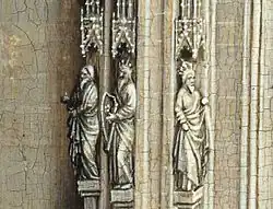 La disposition sculpturale développée par Rogier van der Weyden s'inscrit dans une généalogie artistique complexe, dont les sources peuvent être retracées jusqu'aux innovations plastiques de Claus Sluter dans le Puits de Moïse (c. 1395-1403). Cette généalogie révèle des stratégies de représentation où l'architecture devient un dispositif herméneutique dépassant la simple ornementation. Dans le contexte de la Chartreuse de Champmol, les figures prophétiques incarnaient une dimension juridico-théologique explicite, symbolisant les juges du Christ selon le précepte légal : Secundum legem debet mori (« selon cette loi, il doit mourir »)[20]. Leur fonction était intrinsèquement liée à la narration de la Crucifixion, établissant un dialogue symbolique entre la prophétie vétérotestamentaire et l'événement christique[16]. La réinterprétation de van der Weyden opère une translation symbolique significative : ces mêmes figures prophétiques sont désormais associées à la figure mariale, créant un nouveau réseau de significations théologiques[14]. Cette réarticulation suggère une conception plus nuancée des relations entre prophétie et rédemption[16]. Bien que l'intégration de personnages dans des niches architecturales constitue une tradition séculaire dans l'art septentrional, la représentation sculpturale de ces figures constituait une innovation plastique remarquable durant les années 1430. L'Agneau mystique des frères Van Eyck peut être considéré comme un point de convergence décisif dans cette évolution stylistique[5].