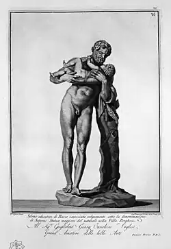 Cette gravure est rattachée depuis 1901 à six autres gravures attribuées à la main d'Andrea Mantegna. Contrairement à d'autres gravures plus anciennes, son motif ne semble pas avoir été conçu pour un tableau ou des fresques décoratives, mais bien dans ce but spécifique d'être une pièce gravée[1].