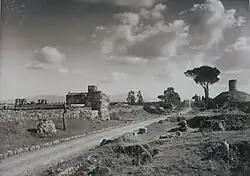Dénivelé au centre du tableau correspondant à la voie appienne, tombes, ruines de villas.