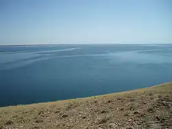 Le lac Aydar dans la partie sud-ouest du système laguste Aydar-Arnasay. | ||