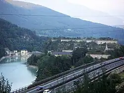 Le lac de Fortezza, avec la forteresse de Franzensfeste. | |||