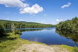 Le lac est composé de deux bassins de faible profondeur, ceinturés par une forêt mixte[3]. Une presqu'île rattachée à la rive nord s'étire sur 0,5 km vers l'est dans la partie centrale du lac.