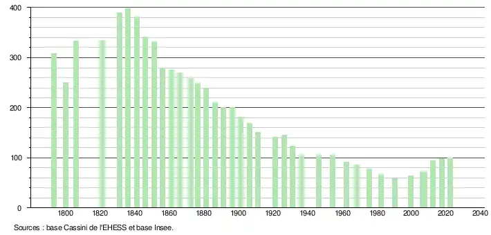 - ↑ Population municipale de référence en vigueur au 1er janvier 2025, millésimée 2022, définie dans les limites territoriales en vigueur au 1er janvier 2024, date de référence statistique : 1er janvier 2022.
