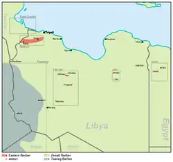 Outre l'arabe, plusieurs langues berbères sont parlées en Libye par environ 600 000 locuteurs. Le plus important groupe de locuteurs est concentré dans la Tripolitaine[2]. Il s'agit du berbère nafusi dans le Djebel Nafusa, ainsi que le Zouara de la ville du même nom sur la côte nord-ouest. Elles sont également parlées dans certaines oasis telles que Ghadamès, Awjila et Sawknah. Le tamahaq est parlé par les Touaregs.