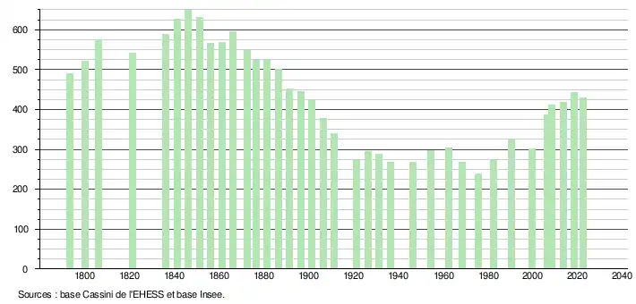 - ↑ Population municipale de référence en vigueur au 1er janvier 2025, millésimée 2022, définie dans les limites territoriales en vigueur au 1er janvier 2024, date de référence statistique : 1er janvier 2022.