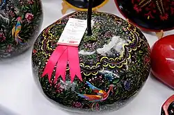 Des objets en bois, en céramique et en onyx sont traités, mais sont loin de l'utilisation des courges séchées[2]. Les gourdes sont longtemps utilisées pour la création de tasses et autres plats, notamment ceux pour la consommation de chocolat par des nobles mésoaméricains[4],[12]. Elles sont également utilisées pour fabriquer des conteneurs de stockage et des objets de décoration[2],[39]. Aujourd'hui, ces jícaras laquées (du Nahuatl xicalli) sont toujours populaires, soit en tant qu'objet de décoration, soit pour créer un bol pour manger ou boire[2].