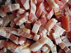 En cuisine, un lardon est un petit morceau de lard de porc.