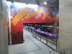 - "Voo da Aproximação" (panneau), Gilberto Salvador, peinture et émail sur céramique brûlée à haute température (2002), pièces de céramique émaillées et colorées. (150 m2), installé sur le mur devant la mezzanine pour accéder au terminus de bus[13].