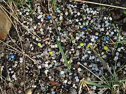 accumulation de « larmes de sirène » (en anglais : mermaid’s tears ou nurdles) dans l'environnement (2008), source future de nanoplastiques