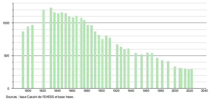 - ↑ Fiches Insee - Populations de référence de la commune pour les années 2006, 2007, 2008, 2009, 2010, 2011, 2012, 2013, 2014, 2015, 2016, 2017, 2018, 2019, 2020, 2021 et 2022.