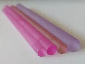 Le premier matériau utilisé dans les lasers furent les cristaux de rubis synthétiques. Les lasers à rubis sont encore utilisés dans quelques applications, mais ils ne sont pas très courants à cause de leur faible rendement énergétique. A température ambiante, les lasers à rubis émettent seulement de courtes impulsions de lumière, mais aux températures cryogéniques ils sont capables d'émettre un train continu d'impulsions[5].
