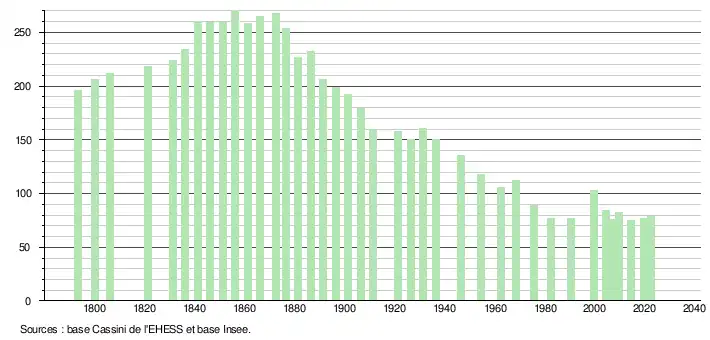 - ↑ Population municipale de référence en vigueur au 1er janvier 2025, millésimée 2022, définie dans les limites territoriales en vigueur au 1er janvier 2024, date de référence statistique : 1er janvier 2022.
