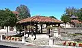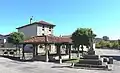 Le lavoir à impluvium est un édifice rectangulaire à toiture à quatre pentes, dirigeant l'eau vers un bassin central également rectangulaire.