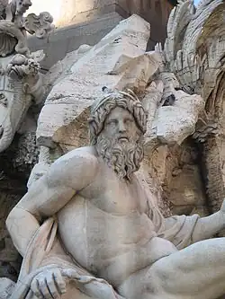 Le Bernin n'est pas en disgrâce, mais cela y ressemble presque. Quelques mois après avoir achevé le tombeau d'Urbain, en 1648, il remporte la commande de Pamphilj pour la prestigieuse Fontaine des Quatre-Fleuves sur la Piazza Navona, marquant la fin de sa disgrâce et le début d'un autre chapitre glorieux de sa vie, grâce à des manœuvres furtives avec la complicité de la belle-sœur du pape, Donna Olimpia Maidalchini[51], et l'habile médiation du prince Niccolò Ludovisi. La solution du rocher qui déverse l’eau dans le bassin et qui soutient en même temps l’ancien obélisque, retrouvé près du Cirque de Maxence, et le concept des « quatre fleuves » (le Nil, le Gange, le Danube et le Río de la Plata), représentant les quatre continents connus à l’époque, suscitent l’enthousiasme général[52].