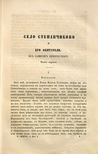 Le Bourg de Stépantchikovo et sa population (en russe : Село Степанчиково и его обитатели), aussi traduit par Stièpanchikovo et ses habitants. Mémoire d'un anonyme, est un roman de l'écrivain russe Fiodor Dostoïevski paru en 1859.