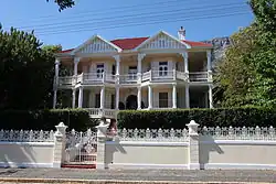 - ↑ Sir Nicolaas Frederic de Waal (1853–1932) fut député de l'Afrikaner Bond au parlement de la colonie du Cap, secrétaire colonial au cabinet de John X. Merriman et, de 1910 à 1926, le premier administrateur de la province du Cap en Afrique du Sud. En tant qu'administrateur, il lança la construction de la route d'altitude reliant la ville du Cap à la banlieue sud (De Waal Drive) ainsi que la construction de Chapman's Peak Drive entre Hout Bay et Noordhoek.
