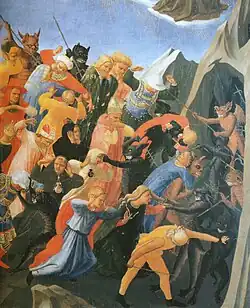 Fra Angelico a traité le même thème du Jugement dernier, à fresque, à Orvieto dans la chapelle San Brizio (travail terminé par Luca Signorelli qui a représenté son portrait et le sien dans la partie Venue de l'Antéchrist).