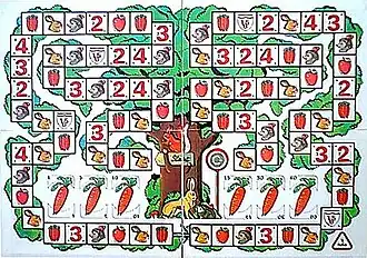 On ne gagne rien en arrivant sur une case numérotée. Lorsqu'un joueur se trouve au début de son tour sur une case numérotée et qu'il occupe dans la course une place égale à ce numéro, il gagne un nombre carottes égal à son rang multiplié par 10. Par exemple, si vous êtes sur une case "3" au début de votre tour et que vous êtes actuellement troisième, vous gagner 30 carottes. Il est important de prévoir la place relative des autres joueurs pour profiter au mieux des cases numérotées.