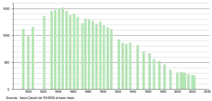 La commune a compté plus de 1 500 habitants dans les années 1840, encore 1 100 en 1911, puis elle s'est dépeuplée jusqu'en 1999.
