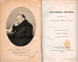 Fac-similé de 1902 d'un numéro du Messager de l'Europe paru en 1808, avec un portrait de Joukovski