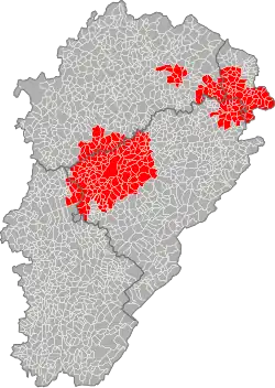 Les trois aires urbaines d'édition en Franche-Comté.