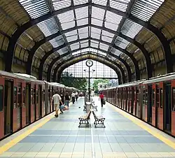 - établie en surface, Le Pirée est la station terminus ouest de la ligne 1 du métro d'Athènes, avant la station Fáliro, en direction de la station terminus nord Kifissiá[1]. La station dispose de deux voies en impasse et d'un quai central et deux quais latéraux ;