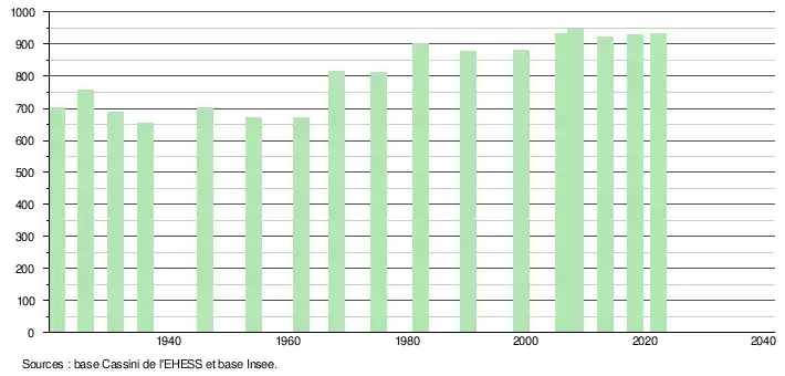 - ↑ Population municipale de référence en vigueur au 1er janvier 2025, millésimée 2022, définie dans les limites territoriales en vigueur au 1er janvier 2024, date de référence statistique : 1er janvier 2022.