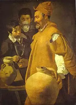 D'après la description de Vélasquez en personne dans l'inventaire des biens de Juan Fonseca, le thème serait, simplement, le portrait d'un « porteur d'eau », travail commun à Séville. Estebanillo González dans Vida y hechos, raconte qu'arrivé à Séville, pour ne pas être poursuivi comme vagabond, il prit ce métier sur les conseils d'un ancien porteur d'eau « qui me parut lettré car il avait la barbe en queue de canard ». Estebanillo choisit ce travail rémunérateur, dans une ville chaude et peuplée. C'était un office « nécessaire à la république » qui ne demandait pas d'examen ou de permis pour s'établir, il suffisait d'avoir « une jarre et deux bouteilles de verre ». Payé à la tâche, il remplissait sa jarre d'eau fraîche dans le puits d'un portugais et la vendait comme eau de l'Alameda, en la couvrant d'une branche pour prouver son origine. Il obtenait deux réales l'eau durant les matinées, à quoi il ajoutait les ventes de faux jambons de Bologne et de cure-dents de Moscou[6].