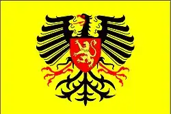 Blason de la famille princière Jansen : un écu de gueules (rouge) au lion rampant (debout, pattes avant écartées) d’or