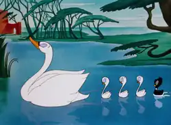 La maman cygne, ses trois petits et le petit Daffy dans la séquence Le Beau Danube bleu.