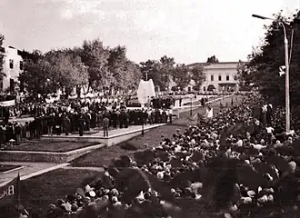 L'inauguration a lieu devant la foule des célébrations des trente ans de la libération de la ville avec le conseil municipal et des représentants des associations de jeunesse, ainsi que des familles des disparus et les anciens combattants. Des poèmes de Soukhoroutchenko en l'honneur des résistants furent déclamés et une minute de silence fut respectée suivie d'une salve d'honneur.
