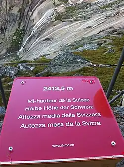 Située entre le point le plus bas (le lac Majeur, 193 m) et le point le plus élevé (la pointe Dufour, 4 634 m), cette mi-hauteur se trouve exactement à 2 413,5 mètres d’altitude.