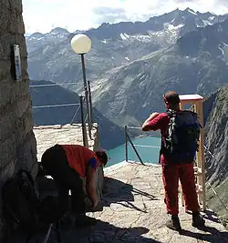 Avec ses 150 centimètres de hauteur, le Tabouret de la Gelmerhütte procure le mètre cinquante manquant pour permettre aux visiteurs de la cabane de s’asseoir exactement à mi-hauteur de la Suisse. Depuis le , ce tabouret très particulier fait partie intégrante du mobilier de la cabane.