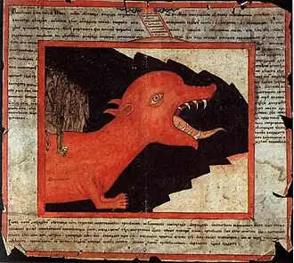 - ↑ Le motif de la salive parlante, qui retarde la poursuite, figure également ici.