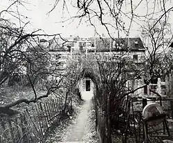 Au XIXe siècle, cette maison et ses dépendances abritèrent des artistes comme Auguste Renoir, Émile Bernard, Othon Friesz, Raoul Dufy, Suzanne Valadon, Maurice Utrillo, André Utter, Maximilien Luce, Dimitrius Galanis ainsi que des écrivains comme Léon Bloy ou Pierre Reverdy. C’est dans le jardin du Manoir que Renoir, qui louait un atelier sur place, peignit en 1876 La Balançoire et le Bal du moulin de la Galette. En dépit de son passé, le Manoir faillit disparaître dans les années 1950 au profit de la construction d’une série d’habitations à loyer modéré. La bataille qui a été livrée pour la sauvegarde du Manoir doit une grande partie de son succès à la création en 1954 du Comité de sauvegarde du site de Montmartre, dont le domaine d’action s’étendait à tout un secteur de la Butte[note 6]. Ce comité permit la conservation de monuments emblématiques de Montmartre, tels que la Ferme et le bal du Moulin de la Galette comprenant les deux moulins : le « Radet », aujourd’hui propriété du Vieux Montmartre, et le « Blute-fin »[note 7]. Le comité était placé sous l’égide du Vieux Montmartre, alors présidé par Paul Yaki. Après une intensive campagne de réhabilitation des lieux menée par Claude Charpentier, les efforts combinés du comité et de la société se concrétisèrent par l’inauguration du musée de Montmartre le , en présence d’Émile Pelletier, ancien préfet de la Seine et ministre d’État de la Principauté de Monaco. Claude Charpentier en fut le premier conservateur et Yaki le premier président[3].