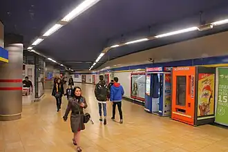 La station possède trois accès équipés d'escaliers et d'escaliers mécaniques ainsi qu'un quatrième par ascenseur directement depuis la rue. Les installations souterraines permettent les correspondances entre les quais respectifs des lignes 3 et 6.