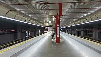 Elle dispose d'un quai central encadré par les deux voies de la ligne, qui se prolongent après la station pour rejoindre le dépôt.