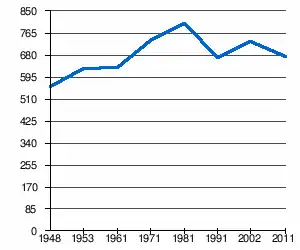 - 1 2 (sr + en) « Livre 20 : Vue d'ensemble comparative de la population en 1948, 1953, 1961, 1971, 1981, 1991, 2002 et 2011, données par localités) » [PDF], pages du recensement de 2011 en Serbie - Institut de statistique de la république de Serbie, (consulté le )