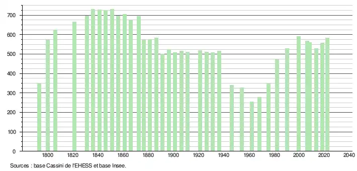 - ↑ Fiches Insee - Populations de référence de la commune pour les années 2006, 2007, 2008, 2009, 2010, 2011, 2012, 2013, 2014, 2015, 2016, 2017, 2018, 2019, 2020, 2021 et 2022.
