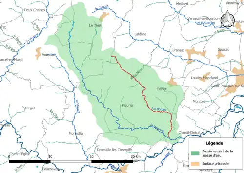 Le ruisseau des Bordes traverse 5 communes de l'Allier, soit de l'amont vers l'aval : Le Theil, Laféline, Fleuriel, Cesset, Chareil-Cintrat.