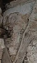 Pour les fresques de la chapelle les murs ont été recouverts d'un enduit de préparation à la chaux peu épais (1 cm) qui a ensuite été peint en utilisant soit la technique de la fresque soit une peinture à la chaux. Ces peintures ont été recouvertes par plusieurs enduits ; l'élément le mieux conservé est la scène de la Résurrection du Christ représentée sur la paroi est[2].