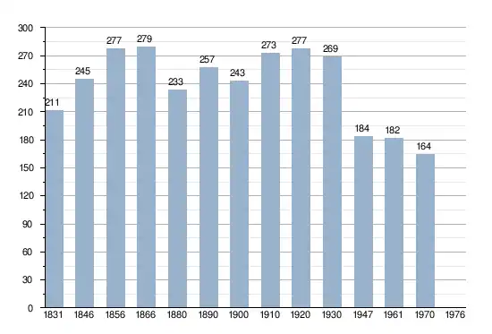 - Sources : INS, Rem. : 1831 jusqu'en 1970 = recensements[2].