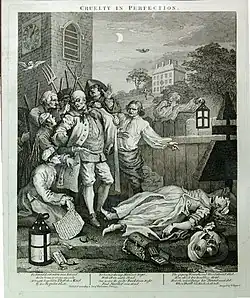 - ↑ (en) William Hogarth (1697 - 1764) The Four Stages of Cruelty, par Haley & Steele — en ligne sur archive.org.