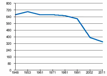 | 664 | 701 | 665 | 663 | 654 | 616 | 390[2] | 343[1] |