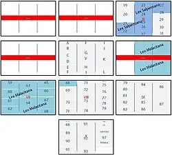 - ↑ La plaque III est en 16 fragments et il manque un fragment dans la colonne A, section 11. 36.