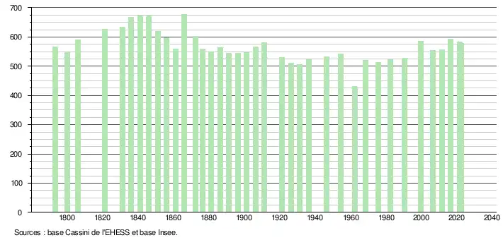 - ↑ Population municipale de référence en vigueur au 1er janvier 2025, millésimée 2022, définie dans les limites territoriales en vigueur au 1er janvier 2024, date de référence statistique : 1er janvier 2022.