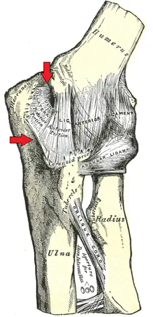 - « Ligament collatéral ulnaire de l'articulation du coude », sur le dictionnaire de l’Académie nationale de médecine