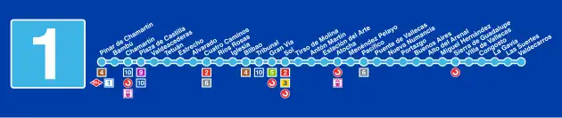 La ligne 1 du métro de Madrid (en espagnol : línea 1 del metro de Madrid) est l'une des treize lignes du réseau du m métro de Madrid en Espagne. Longue de 23,9 kilomètres elle dispose de 33 stations, de Pinar de Chamartín, au nord à Valdecarros, au sud-est.