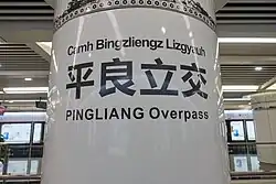 | 平良立交 (Píngliáng lìjiāo) | Bingzliengz Lizgyauh | Échangeur Pingliang (zh) (Pingliang Overpass) | ![]() |